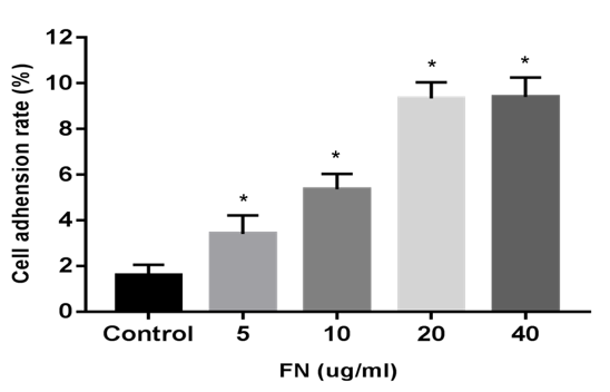 图2.不同浓度FN预包被培养皿对细胞粘附率的影响[10]