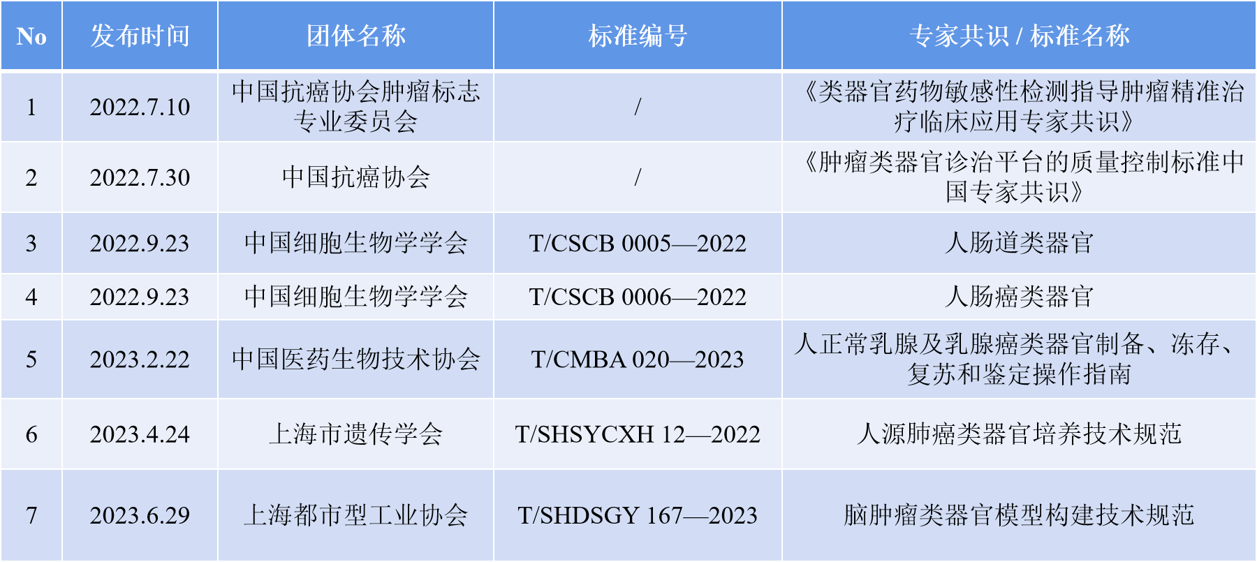 表2 国内施行的类器官相关团体标准